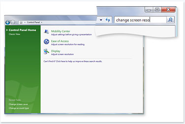 Type keywords into the Quick Search box in the new Control Panel to find the right system setting quickly.